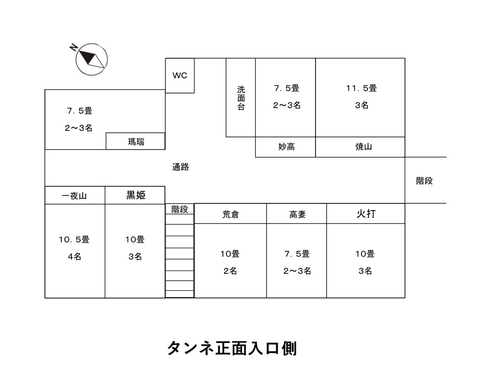 タンネには全部で8部屋の和室(7.5畳~11.5畳)があり、各部屋の定員は2~4名ですが、