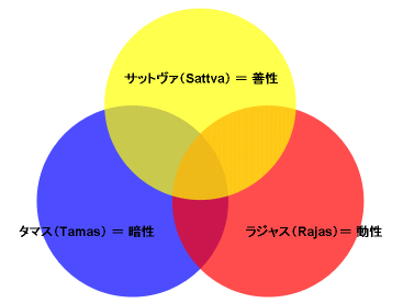 ヨーガやアーユルヴェーダの世界では、私たちの性格や気質は次の3つのグナ(=トリ・グナ)という心の基礎となる生命エネルギーのの組み合わせで決定すると考えられています。この原理は聖人君主であっても悪人であっても例外なく同じです。 ポイントはどのグナがどれだけ優位かという比率の問題なのです。 • サットヴァ(Sattva) = 善性 • ラジャス(Rajas)= 動性 • タマス(Tamas) = 暗性